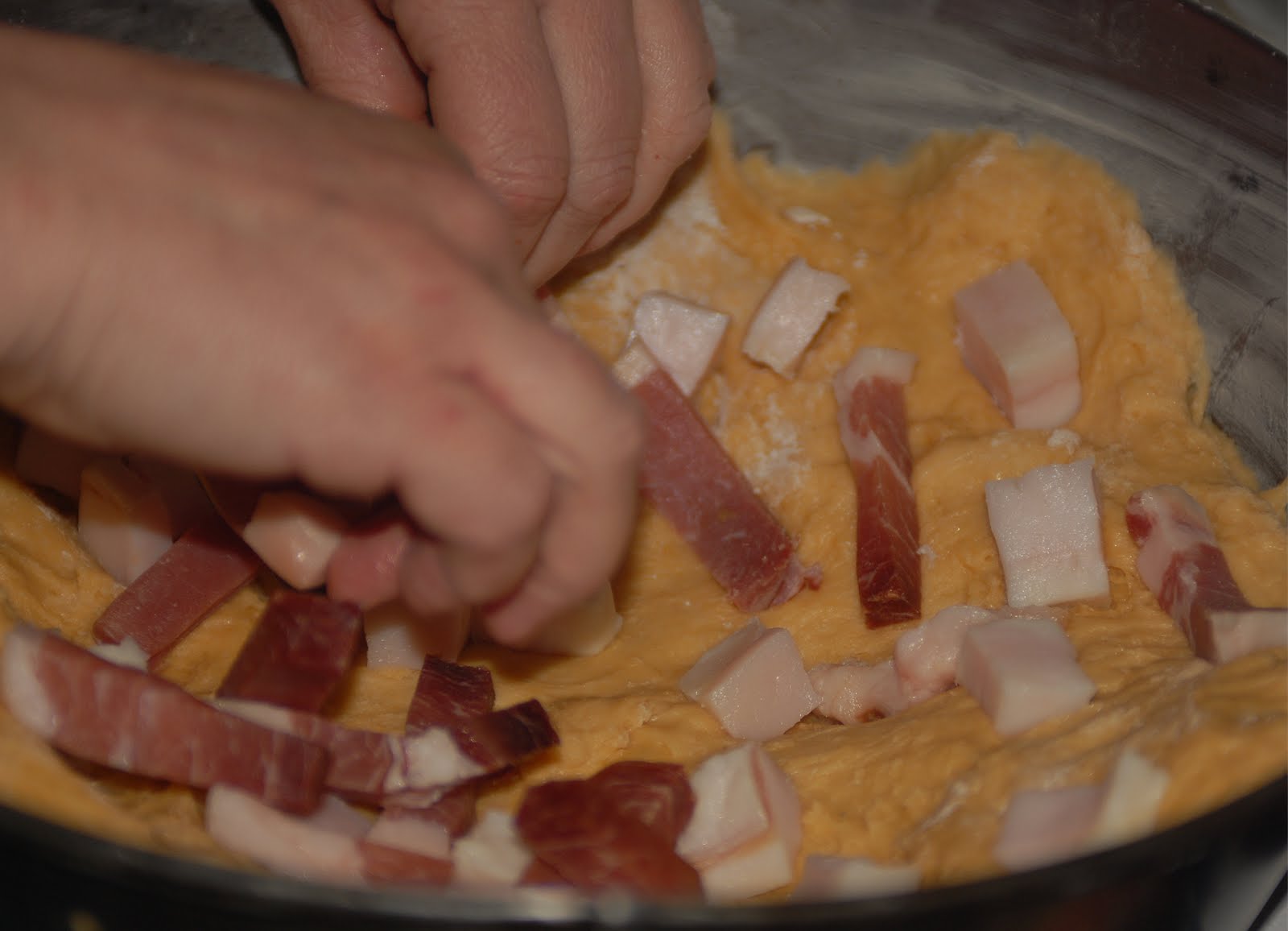 | Colocação do recheio do folar de Chaves |