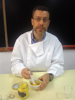 | O professor Carlos Almeida a preparar creme com odor a laranja. |